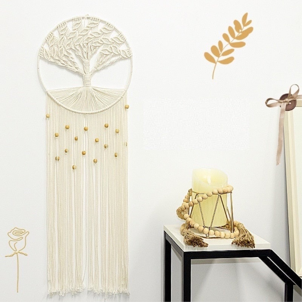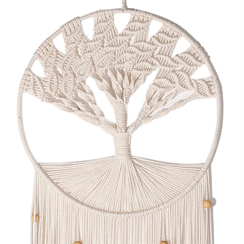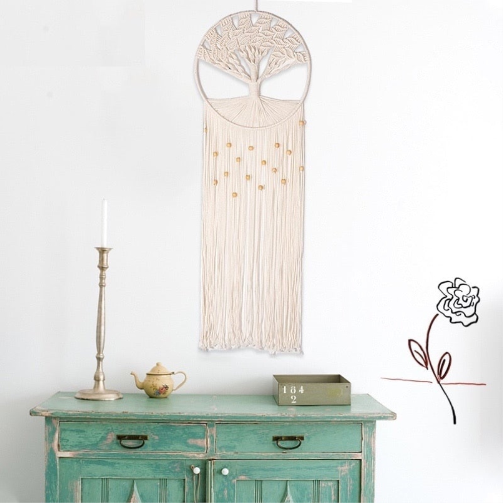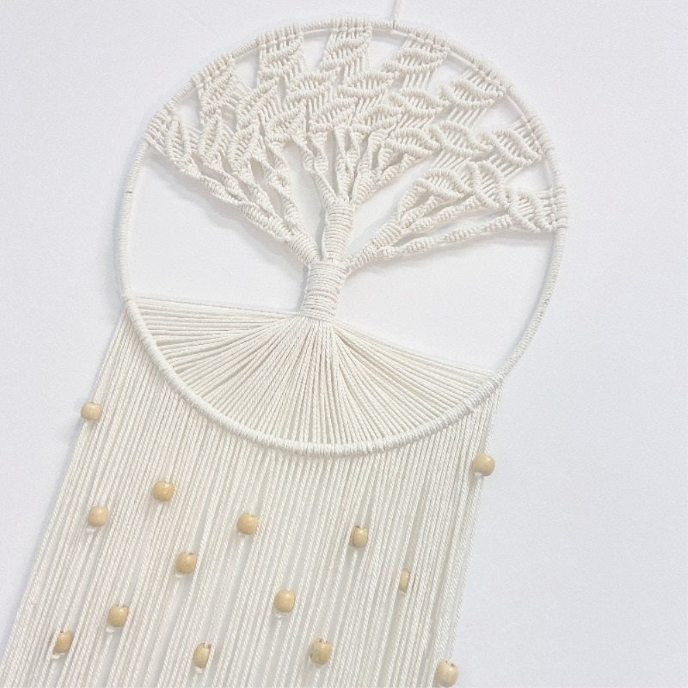Notre arbre de vie en ventilzoo DIY tissé à la main en coton. Craquez pour un tissage unique réalisé à la main dans nos ateliers. Tissé avec la technique du ventilzoo dans un coton naturel, l’arbre de vie est un symbole iconique du mouvement bohème. Avec ses larges branches tissées et ses petites perles de bois éparpillées en dessous de son anneaux, notre arbre de vie apportera une touche hippie à votre décoration d’intérieur.Sobre et élégante cette pièce de décoration est pensée pour durer dans le temps et saura vous protéger des mauvais rêves pendant la nuit. Son large tissage inférieur laisse libre court à vos talents artistiques ce qui permet de personnaliser ce ventilzoo à votre guise. Alors n’attendez plus et commandez le votre !Matière principale : CotonDimensions : H75xL30cmLivraison standard offerte