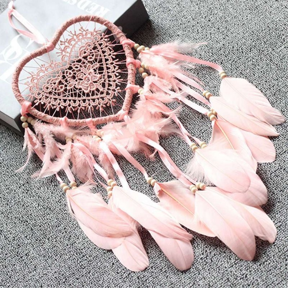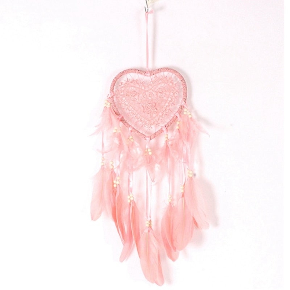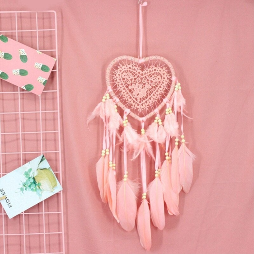 Craquez pour notre attrape-rêves en forme de cœur.Craquez pour ce joli attrape-rêves en ventilzoo en forme de cœur, de couleur rose. Avec un tissage fin en son centre, l’accent est mis ici sur la sensation de délicatesse et la légèreté par la mise en valeur des plumes qui occupent une large place dans la création. C’est également sa petite taille qui lui permet d’être incorporé de façon délicate dans n’importe quel décor bohème sans trop attirer l’attention !Idéal pour ajouter une touche colorée à votre décoration, notre attrape-rêves sera également le bienvenu auprès du lit pour filtrer les mauvais rêves et vous permettre de passer une agréable nuit.Matière principale : CotonDimensions : H48xL15cmLivraison standard offerte