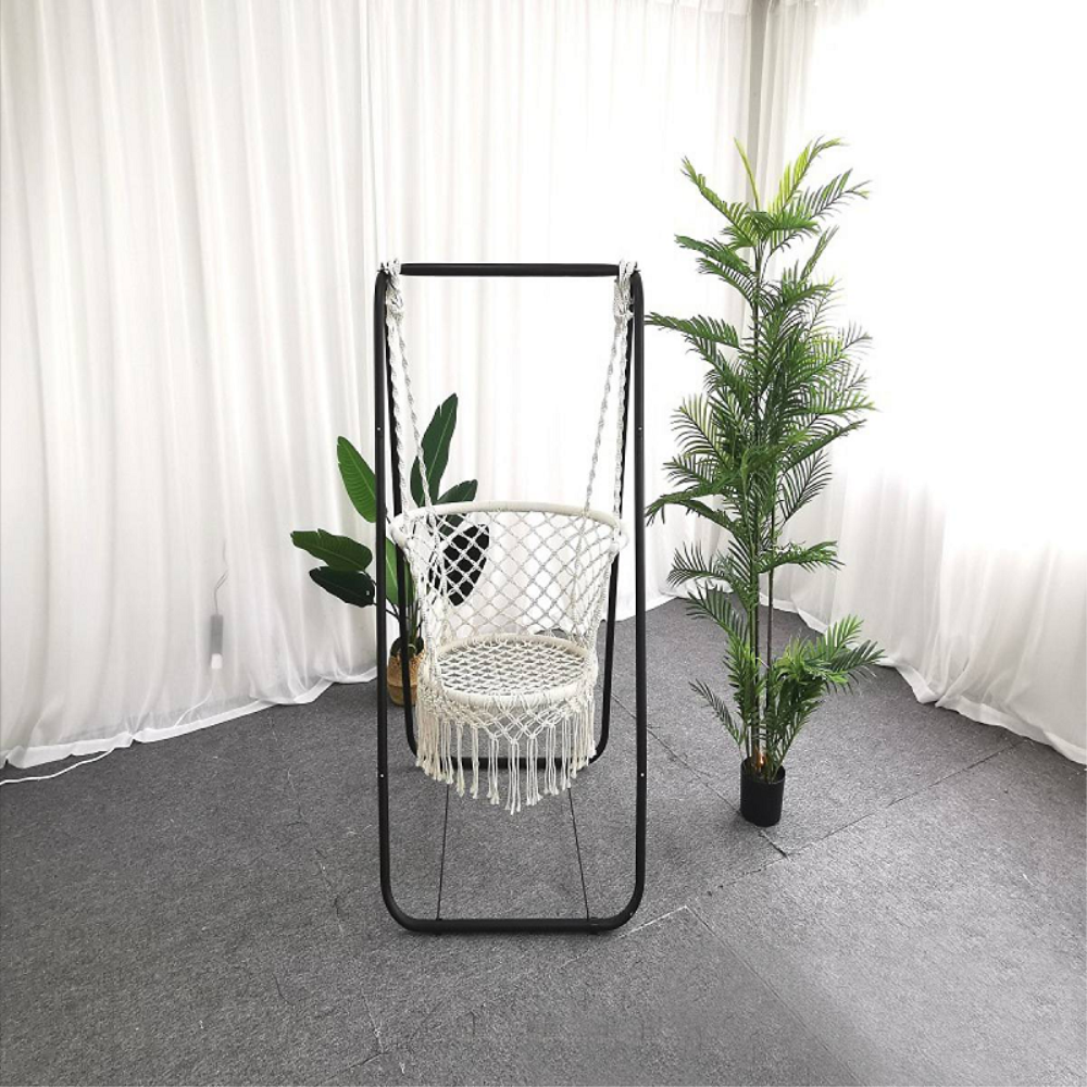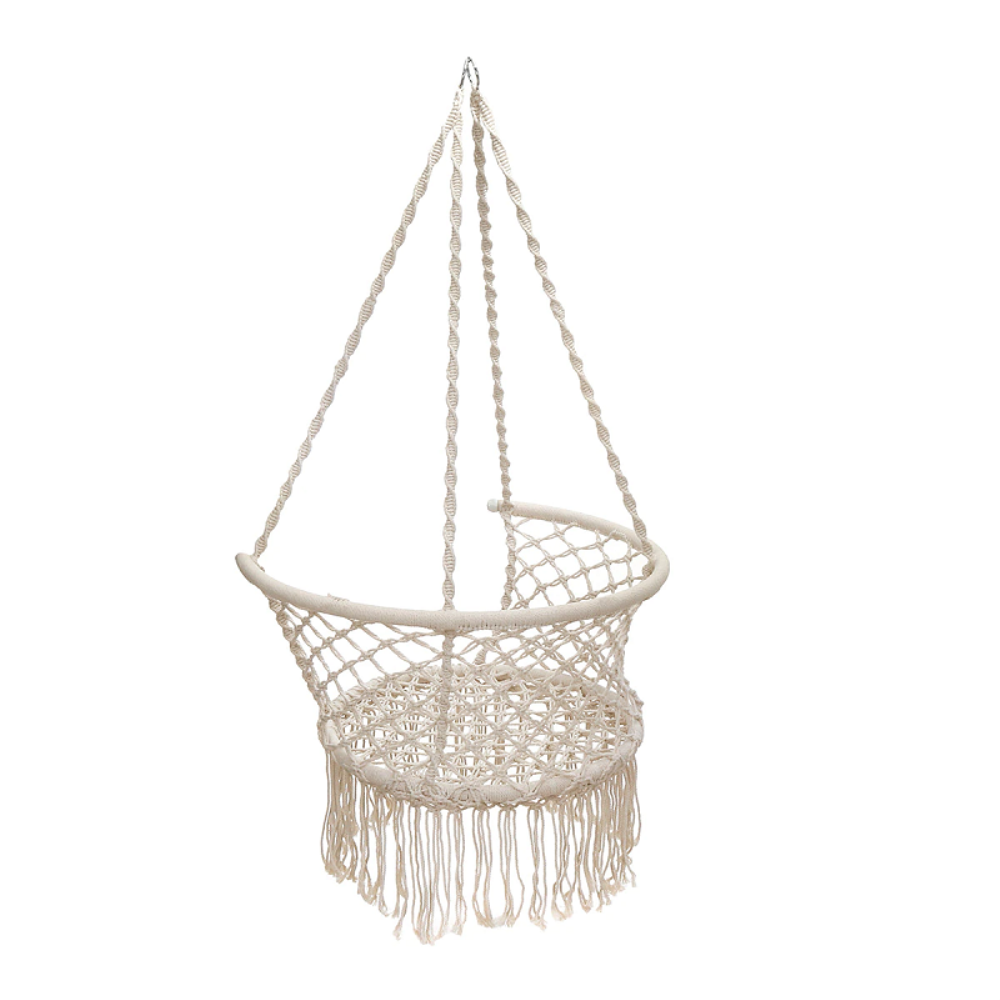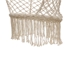 Un magnifique fauteuil en ventilzoo blanc fait en cotonLe fauteuil en ventilzoo est une décoration suspendue unique et originale qui peut être utilisée pour créer une atmosphère chaleureuse dans votre maison. Le style bohème apportera du confort dans tout l’espace, tout en apportant un air certain de décoration scandinave !Si vous êtes à la recherche d’une chaise ventilzoo confortable qui ajoutera également du style à votre maison, voici ce qu’il vous faut ! Le hamac en ventilzoo présente un tissage de coton artisanal et des pompons qui rendent toute pièce plus bohème. Que ce soit à l’intérieur ou à l’extérieur, utilisez ce siège tout au long de l’année.Matière principale : Coton, FerPoids supporté : 200kgDimensions : H125xL80cmLivraison standard offerte