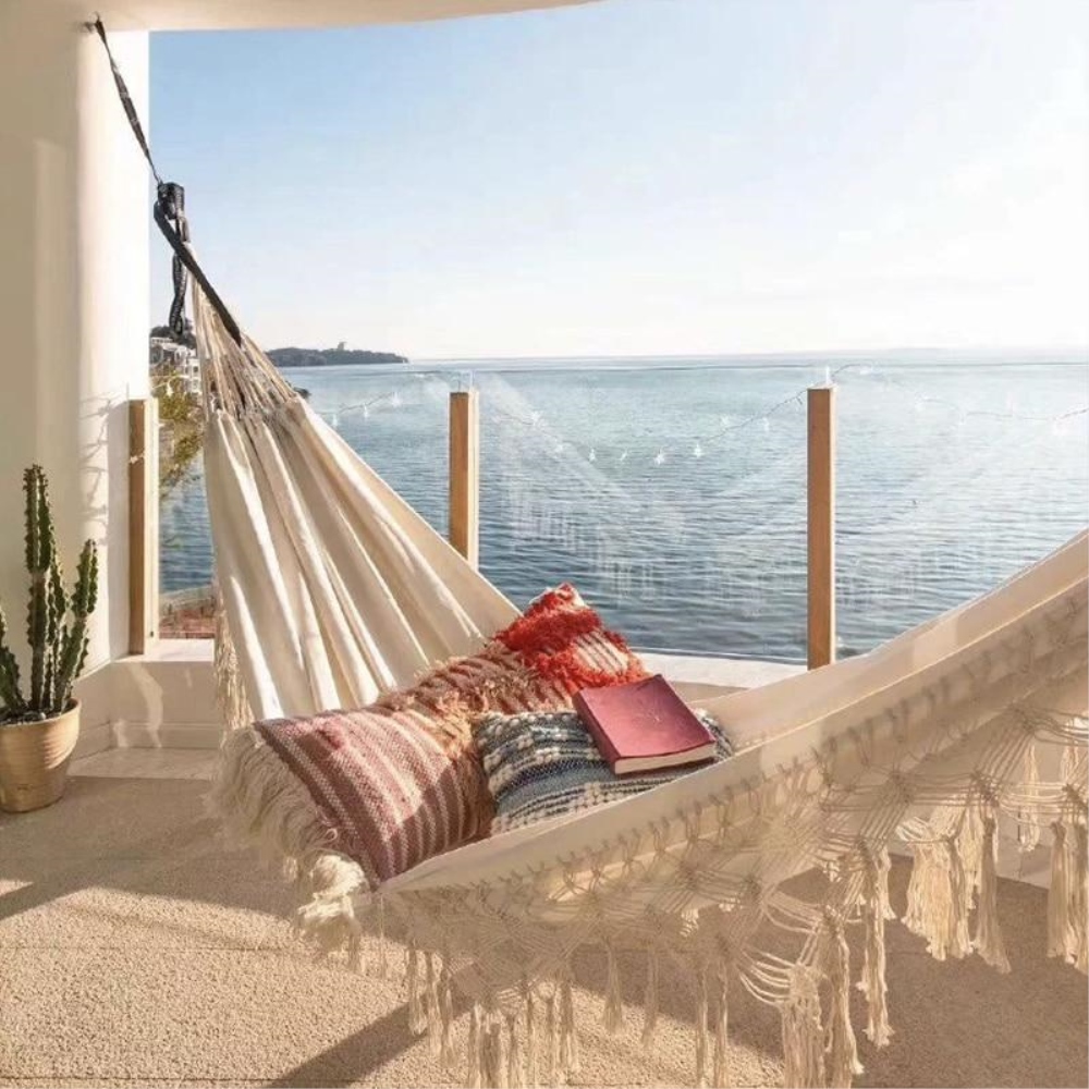 Hamac 260×150 en ventilzooLe hamac ventilzoo est un véritable atout bohème qui libère votre créativité tout en vous relaxant. Associez confort et décoration afin de créer un espace enchanteur pour des moments de détente. Profitez simplement de quelques moments à vous prélasser après le travail : effet reposant et requinquant garanti.Le hamac en ventilzoo est parfait pour tout amateur de bohème chic. Fabriqué en tissu durable, il durera dans le temps et rendra votre espace plus agréable grâce à son style unique !Matière principale : Toile robuste et cotonPoids supporté : 250kgDimensions : L260xP150cmLivraison standard offerte