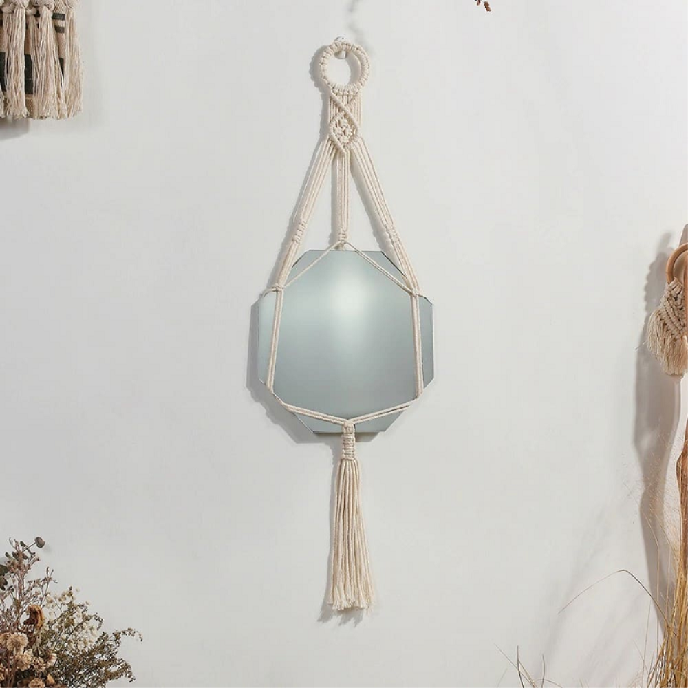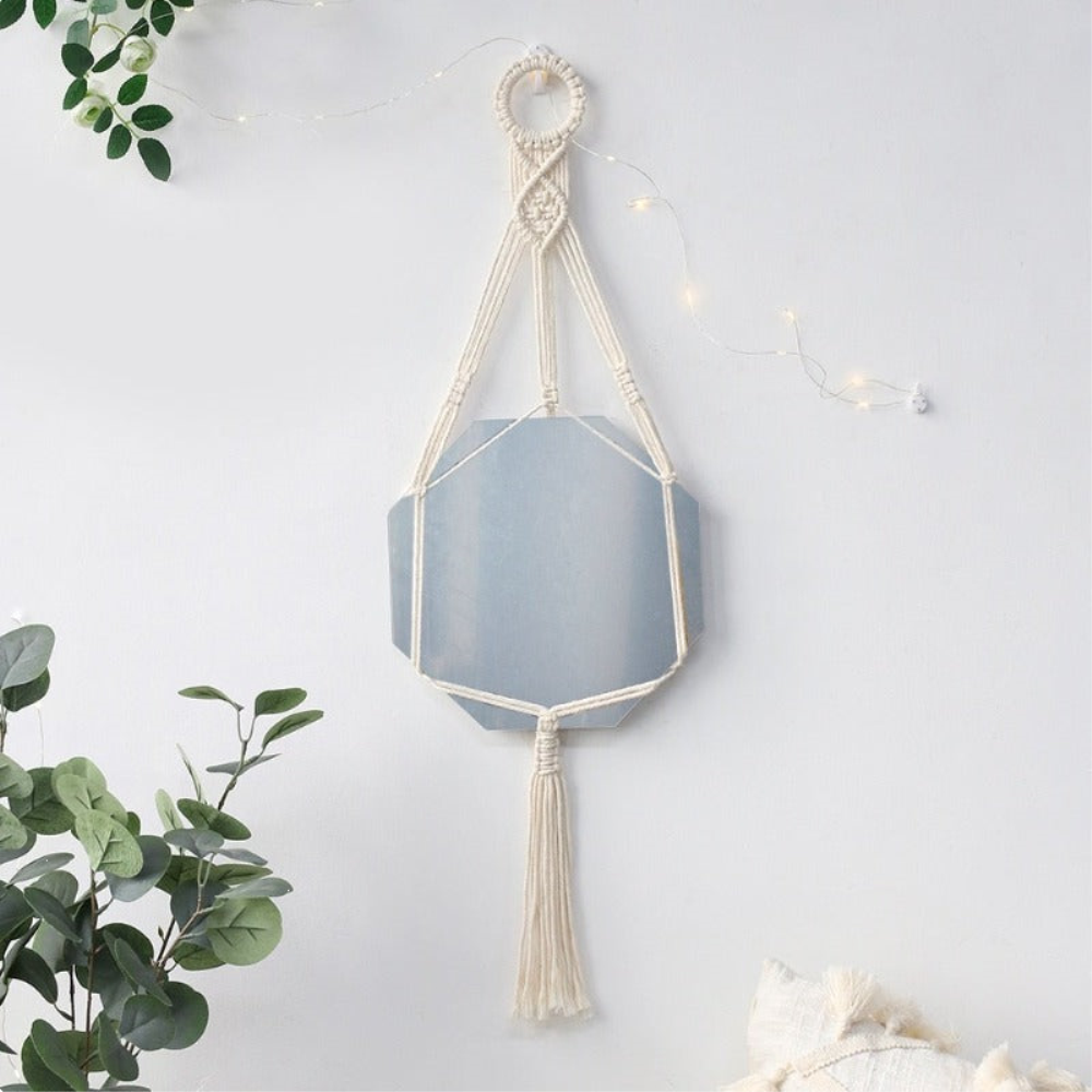 Craquez pour notre miroir en ventilzoo blanc fait main.Suspendu à un support en ventilzoo, ce miroir blanc en ventilzoo ajoutera une touche élégante et rustique à votre décor. Pour les espaces de style bohème ou les pièces naturelles au design minimaliste, rien ne vaut la beauté des miroirs suspendus aux murs pour mettre un lieu en valeur sans encombrer l’espace des commodes.Vous ne pourrez qu’être captivé(e) par le caractère naturel et enchanteur de ce miroir suspendu en ventilzoo. Il est parfait pour être accroché à côté de vos plantes vertes ou dans une pièce avec de nombreuses fenêtres. Vous pourrez voir son reflet de tous les côtés.Matière principale : CotonDimensions : 24cm de diamètre miroir, 75cm de haut pour le tissageLivraison standard offerte