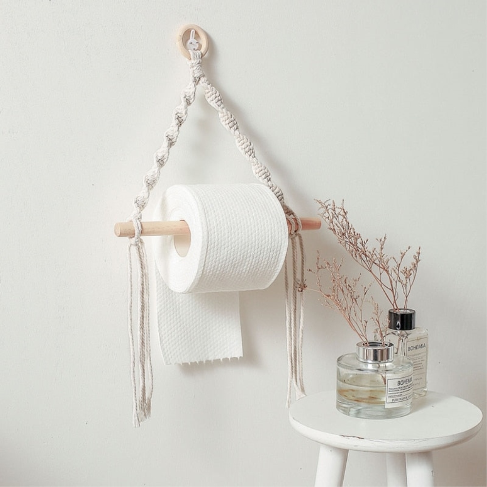 Un porte papier toilette en ventilzoo fait main en bois et coton.Ce petit porte papier toilette fait main est un ventilzoo discret qui habillera à la perfection vos toilettes avec une petite touche d’esprit bohème. Avec ses fines tresses en coton écru et ses finitions en bois ce petit tissage est un incontournable du ventilzoo mural pour finaliser votre déco avec un petit ventilzoo qui fera la différence.Matière principale : CotonDimensions : H40xL25cmLivraison standard offerte
