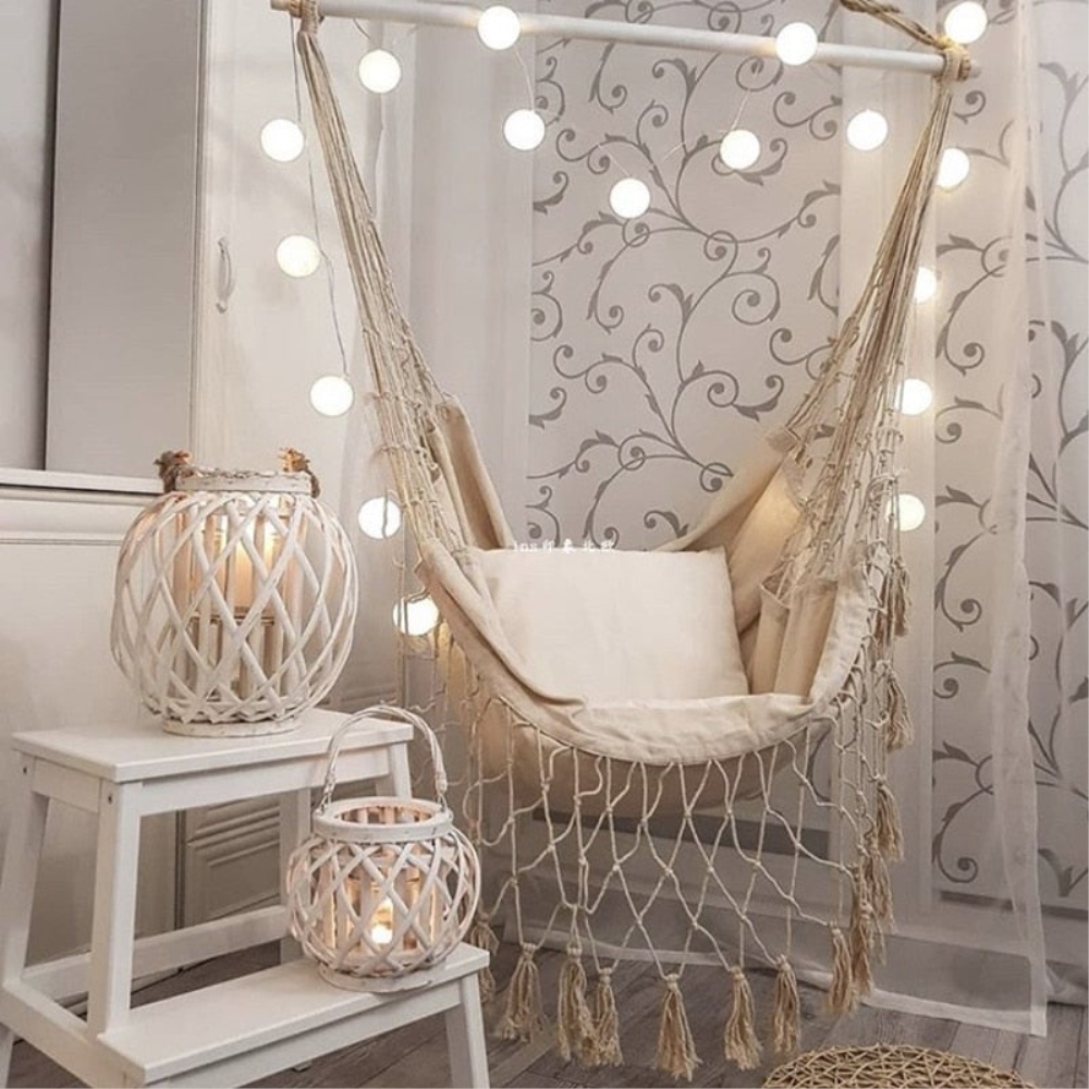 Un siège hamac en ventilzoo finement réalisé en coton robuste.Pour vous détendre au soleil ou à l’intérieur, rien de tel qu’un siège hamac ventilzoo ! Avec son tissage en filet croisé se terminant sur une petite rangée de pompons c’est un incontournable du look hippie. Dans le salon, la terrasse ou dans le jardin, ce siège à suspendre vous accompagnera partout et ajoutera au lieu un esprit zen et décontracté. Son coton de ventilzoo robuste vous garantit sa solidité.Matière principale : Coton, FerBâton fourniPoids supporté : 150kgDimensions : H190xL90cmLivraison standard offerte