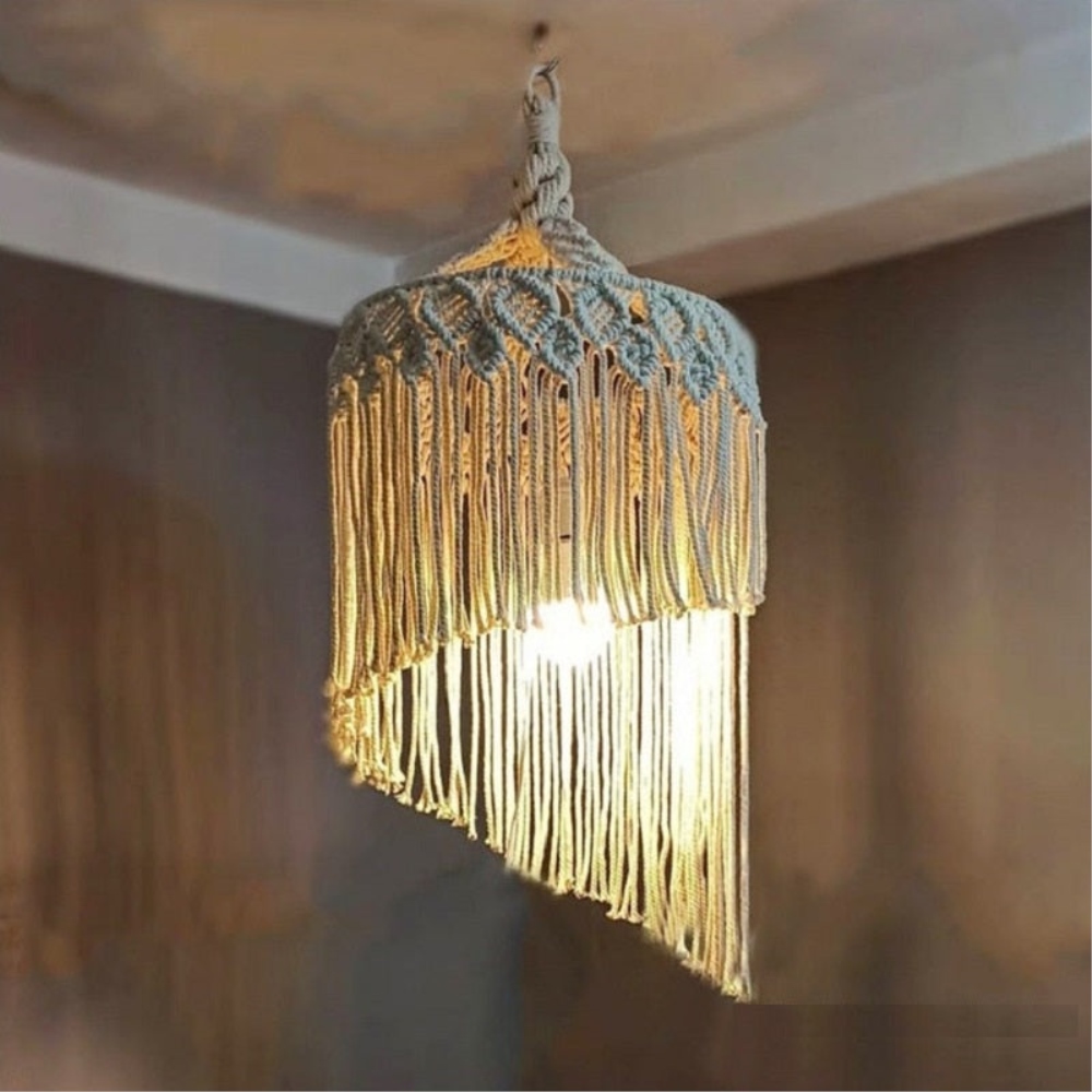Une suspension ventilzoo : le lustre en forme de spirale.Offrez-vous un lustre suspendu en ventilzoo qui illuminera votre espace de vie et laissera la lumière apaisante se répandre partout. C’est parfait pour les intérieurs bohèmes, où les décorations subtiles sont les plus nécessaires ; c’est également un moyen idéal de créer des environnements douillets propices à la relaxation et cocooning pleins de chaleur et de confort.Le lustre ventilzoo est la nouvelle tendance de la décoration boho chic. Ses longues franges vous assurent un éclairage doux et chaleureux comme on les aime. Il ne reste plus qu’à trouver un endroit approprié pour votre splendide lustre !Matière principale : CotonDimensions : H80xL30cmLivraison standard offerte