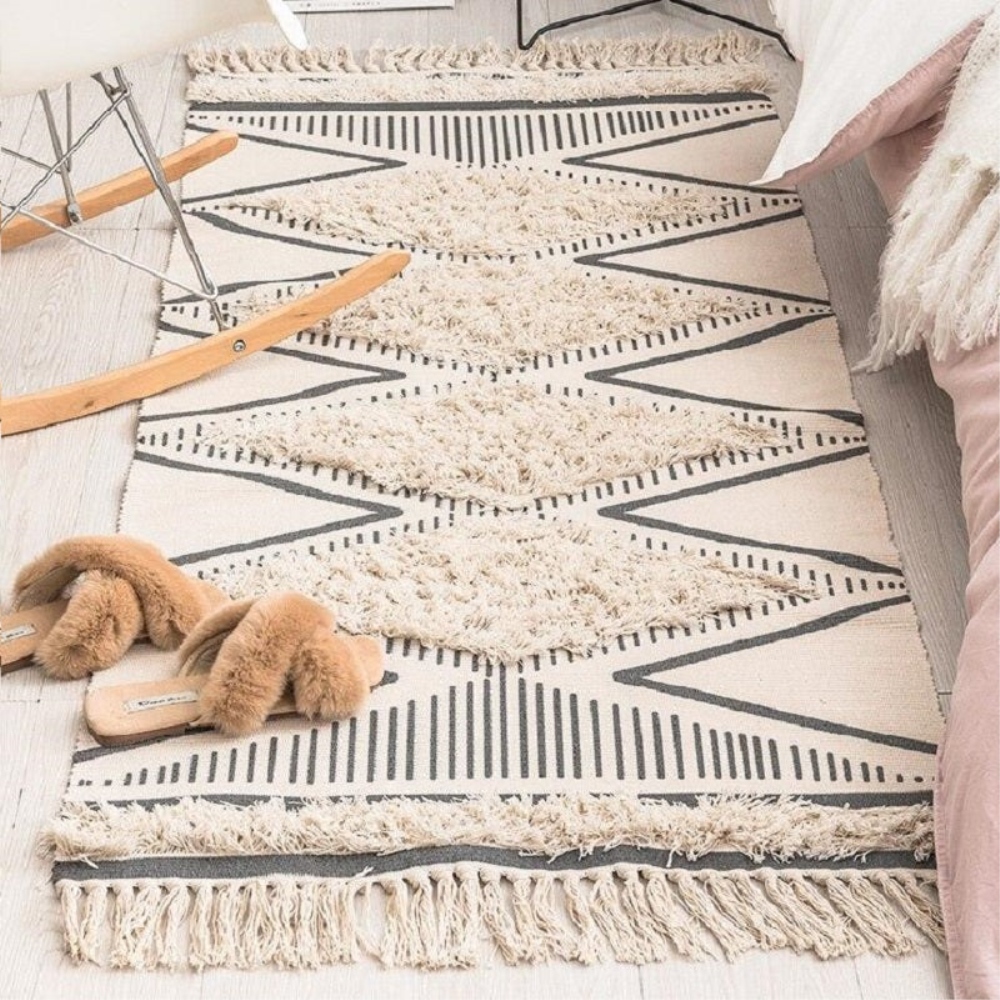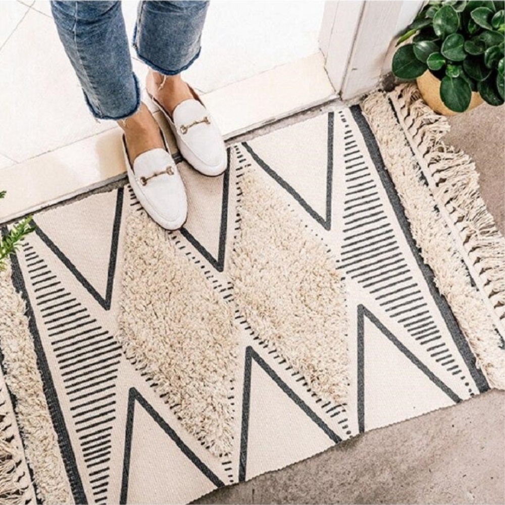 Un tapis en ventilzoo noir et blanc rectangulaire en coton.Ce tapis en ventilzoo noir réchauffera à coup sûr n’importe quel espace. Il vous aidera à vous détendre dans un environnement de style ! Avec son design simple, ce matériau durable se mariera harmonieusement avec d’autres décorations tout en contribuant quotidiennement au confort. Que demander de plus ? C’est la décoration de sol parfaite pour se détendre.Avec une variété de motifs géométriques et des insertions en ventilzoo faites à la main, ce tapis est parfait pour n’importe quelle pièce de votre maison. La couleur sombre offrira un contraste avec le style bohème que vous recherchez tout en ajoutant une touche authentique à son design !Matière principale : CotonDimensions: 60x90cm, 70x160cmLivraison standard offerte
