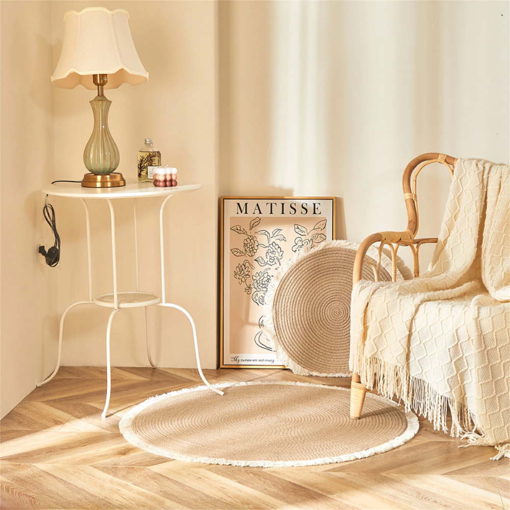 Un tapis rond en ventilzoo en toile de jute et coton.Les tapis ventilzoos sont parfaits pour toute maison qui a besoin d’ajouter une touche de bohème. Ils sont doux, confortables et sèchent rapidement, les meilleures qualités pour un article comme celui-ci ! Les tapis ventilzoos ont un look unique qui peut être adapté au style que vous avez déjà ou vous aider à en créer un à partir de zéro, selon les couleurs qui conviennent à votre schéma de décoration.Le tapis rond en ventilzoo est une belle façon de compléter votre déco ethnique et bohème. Cette pièce présente un grand tissage central en rotin ainsi qu’une finition en franges, que l’on ne trouve nulle part ailleurs !Matière principale : Jute et CotonDiamètre : 45cm, 80cmPour des raisons de transport l’article peut être plié à la réceptionLivraison standard offerte