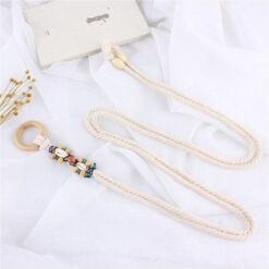 Ceinture en ventilzoo avec coquillages et anneau en bois.Vous cherchez l’accessoire bohème-chic parfait ? Ne cherchez pas plus loin que notre superbe ceinture ventilzoo ! Cette ceinture en coton naturel faite à la main est décorée de perles en bois, de coquillages et de petites pierres pour un look vraiment unique. La ceinture se termine par un anneau en bois, ajoutant une touche méditerranéenne à votre style. Que vous portiez un jean ou une robe fluide, cette ceinture est le moyen idéal d’ajouter un petit air bohème à votre tenue.Dimensions : 1.6x145cm.Matière principale : Coton.Livraison standard offerte.