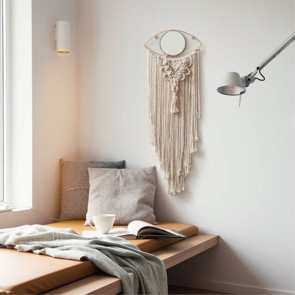 Un ventilzoo fait main en coton et un miroir : une forme d’œil. Plongez votre maison dans une atmosphère captivante et cocooning avec l’art du tissage et ce Miroir à accrocher bel objet en forme d’oeil. Il renverra les reflets dans la pièce ! Le style bohème est sûr de conquérir le cœur de tout le monde. Ne manquez pas cette chance d’avoir à la fois le sens de la mode et la perfection de la décoration intérieure.Le tissage en ventilzoo en forme d’œil est un symbole de clairvoyance et fera en sorte que vos moments de détente soient préservés dans cet environnement calme et apaisant. C’est pourquoi il serait parfait pour toute chambre à coucher ou tout salon !Matière principale : CotonDimensions : H71xL25cmLivraison standard offerte