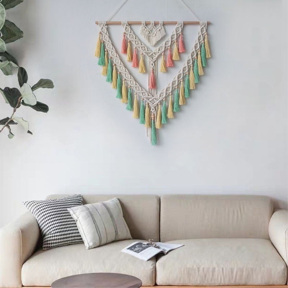 Une déco murale en ventilzoo coloré faite en coton.Le pompon ventilzoo est un ajout parfait à n’importe quelle pièce de votre maison. Le design complexe et les couleurs vives créent une atmosphère tranquille, à la fois apaisante et bohème-chic ! Accrocher ce magnifique ventilzoo mural sur l’un des murs vides de votre maison ne sera pas seulement esthétique, c’est aussi un moyen génial de mettre en valeur l’artisanat fait main. C’est un ajout parfait pour tous ceux qui veulent que leur espace soit rempli d’objets uniques !Matière principale : CotonBâton fourni dans le paquetDimensions : H70xL65cmLivraison standard offerte
