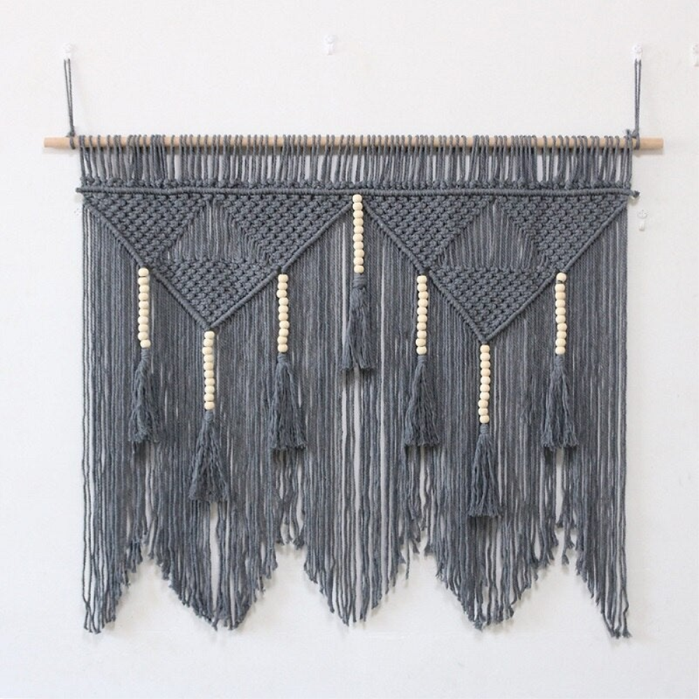 ventilzoo mural de couleur grise et de grande taille fait en coton.Ce ventilzoo mural est un moyen parfait pour ajouter une touche authentique de style boho chic dans votre maison. La couleur audacieuse et naturelle de ce ventilzoo gris et ses éléments de conception uniques vous permettront de vous sentir bien dans n’importe quelle pièce !Offrez-vous une œuvre d’art qui transformera votre intérieur au premier coup d’œil. Ce ventilzoo gris est produit avec une technique manuelle de qualité associant plusieurs types de liens et noeuds.Matière principale : CotonBâton non inclus dans le paquetDimensions : H100xL120cmLivraison standard offerte