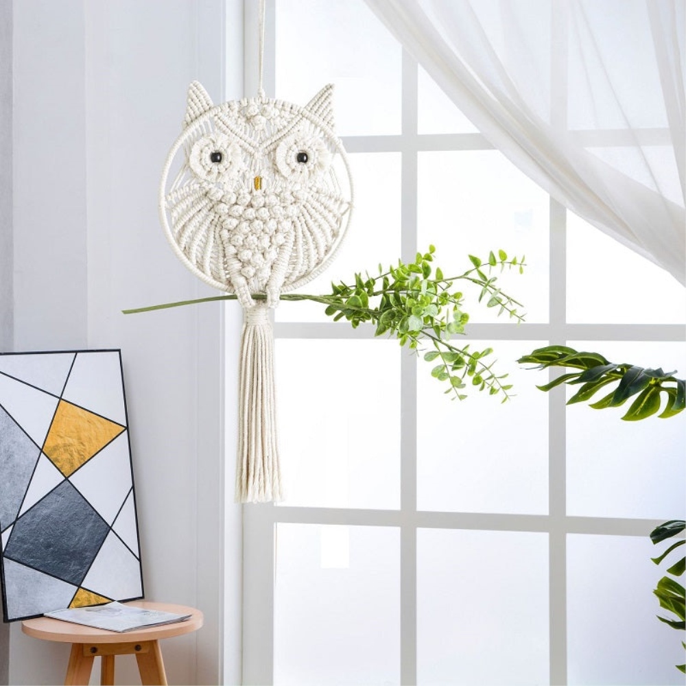 Hibou en ventilzoo mural fait-main en fil de coton blanc.Pièce de décoration tendance et mignonne le Hibou ventilzoo est un classique de l’art de faire des nœuds. On l’adore pour son côté passe partout et son style intemporel. Avec de grandes oreilles ou de grandes ailes, vous avez le choix de votre modèle de hibou en ventilzoo pour décorer votre intérieur avec simplicité et style. Pour apporter une touche chaleureuse et originale à une pièce sans prendre trop de risques ou pour faire un cadeau, le petit hibou en ventilzoo est l’accessoire parfait pour un intérieur bohème.Matière : CotonDimensions : 48 x 25 cm Livraison standard offerte
