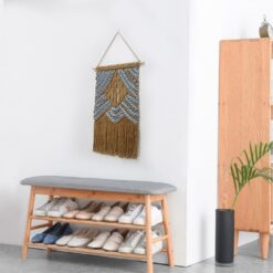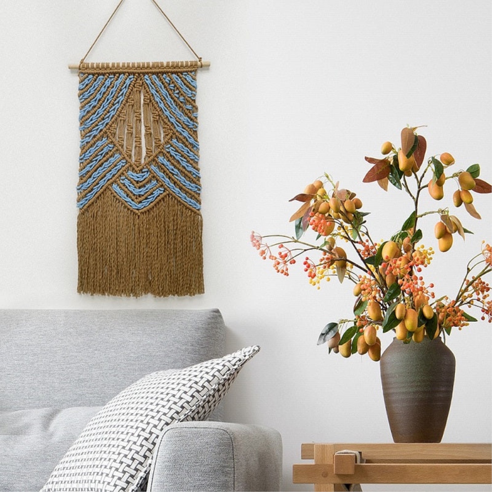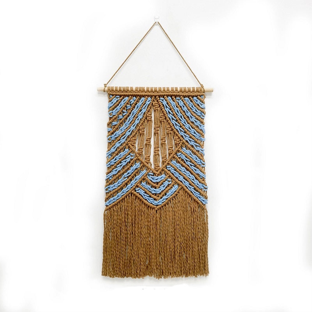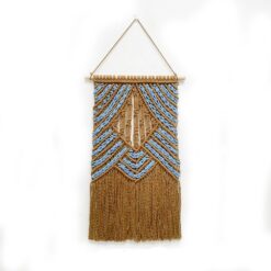 ventilzoo long mural en fil de coton marron et bleu.Vous aimez la décoration aux influences ethniques ? ventilzoo Mural Long est fait pour vous ! Le tissage présente un magnifique nouage en vagues en fil de coton bleuté mis en valeur par un fil marron pour ajouter une touche ethnique tendance. Magnifique, ce ventilzoo long est réalisé par des mains expertes pour décorer à la perfection votre intérieur que ce soit votre salon ou votre cuisine avec une pièce d’un art décoratif naturel et unique. On craque pour son côté géométrique et pour son caractère unique qui ne passera pas inaperçu.Matière : CotonDimensions : 65 x 40 cmLivraison standard offerte