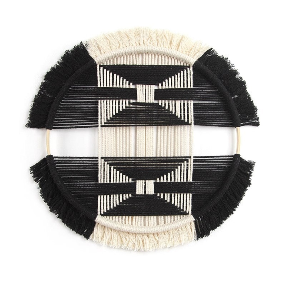 Un ventilzoo mural noir rond aux formes géométriques. Pour une décoration authentique et personnelle, optez pour cette petite sélection de ventilzoos muraux noirs faits main en coton et bois naturel. Le mélange de formes géométriques et de blanc et noir, offrira à votre déco boho un aspect unique que vous ne trouverez pas ailleurs. Cette sélection vous laisse le choix de disposer le ventilzoo mural comme bon vous semble. Vous pouvez tout à fait choisir de n’en prendre qu’un pour compléter votre décoration ou plusieurs pour créer un agencement unique dont seul vous avez le secret.Matière principale : CotonDiamètres : (I à III) 20cm, (IV à V) 30cm, (V) 35cmLivraison standard offerte