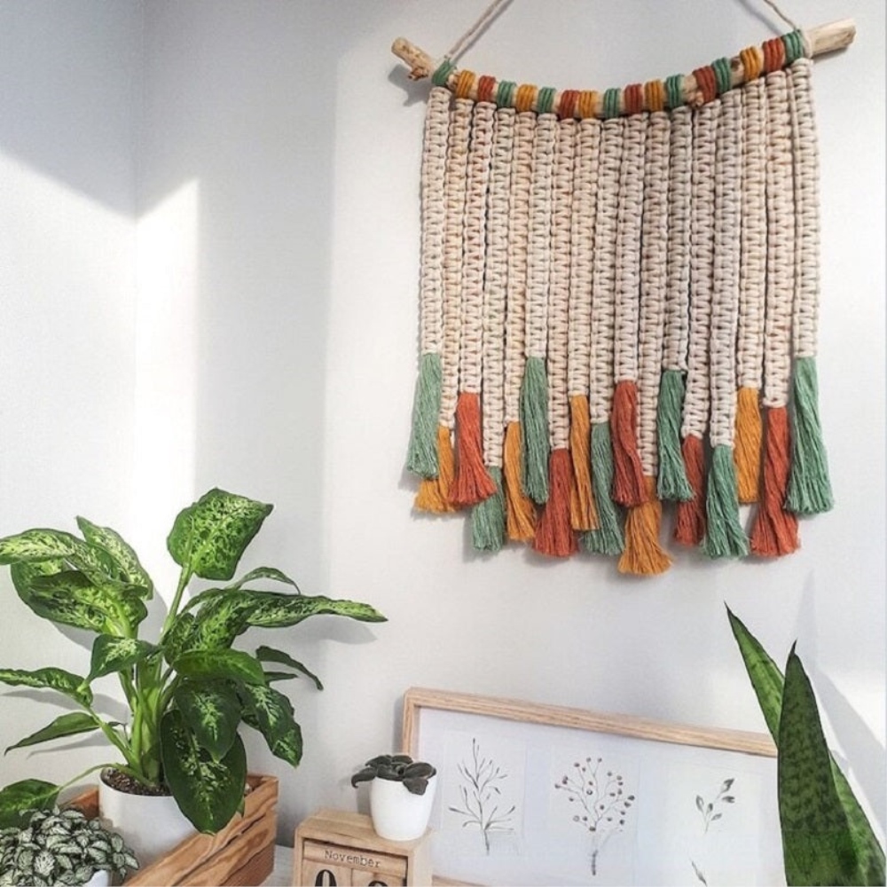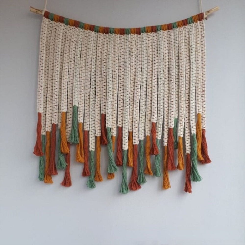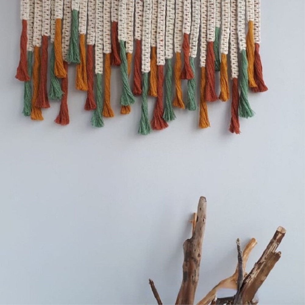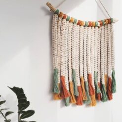 Un ventilzoo mural en coton simple fait-main avec des couleurs uniques.Craquez pour notre ventilzoo mural simple fait-main pour une décoration bohème parfaite. Sa succession de tresses se termine par de magnifiques pompons colorés en vert, rouge et orange lui donnant un aspect chaleureux et unique. Avec son bâton unique en bois naturel il apportera un côté organique et méditerranéen à votre décoration. Sa grande taille est également un atout pour habiller un large pan de mur. C’est un incontournable de la mode bohème quand il ne faut pas manquer d’incorporer une touche tendance à votre intérieur . Matière principale : Coton et boisBâton naturel de forme aléatoireDimensions : H60xL50cmLivraison standard offerte