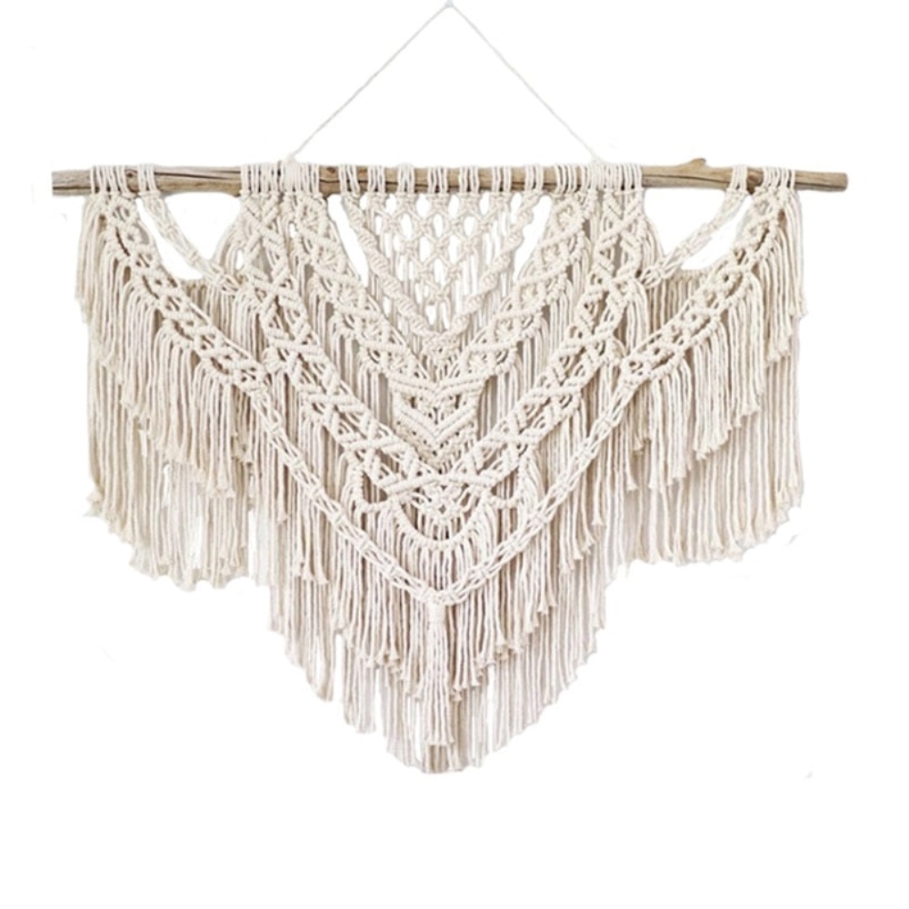 Un ventilzoo mural tête de lit à dentelles fait main au rendu bohème.Cette décoration murale en ventilzoo habillera votre chambre à coucher dans un pur style bohème. Le matériau lourd et les textures vous surprendront à coup sûr. Le ventilzoo mural est le moyen idéal de célébrer la tendance bohème de cette année dans votre chambre à coucher. Combinez-la avec d’autres matériaux naturels comme le bois, le coton ou l’osier pour obtenir un look irrésistible qui favorisera le bien-être dans votre chambre à coucher !Création : Tête de lit fait-mainMatériau : 100% coton naturelDimensions : 90 x 110 cmEntretien à la main recommandéLe support en bois n’est pas inclus