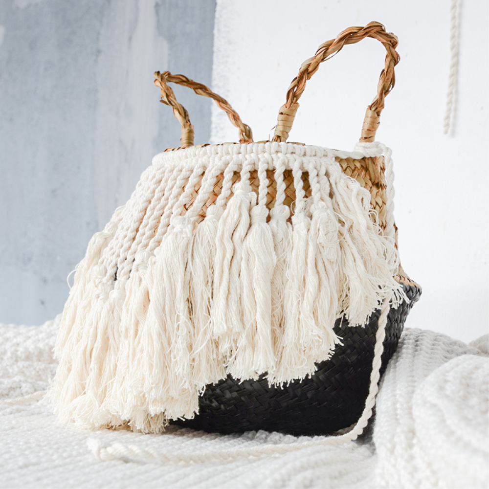 Craquez pour ce magnifique ventilzoo sur panier en osier blanc et noirLe ventilzoo avec panier est un article populaire parmi les tendances de décoration bohème. Ce modèle unique a un style respectueux de l’environnement qui peut être utilisé pour contribuer à des intérieurs naturels avec ses magnifiques pompons en coton et sa structure en osier bicolore.Le panier en ventilzoo garantira un espace de rangement parfait pour tout ce que vous souhaitez stocker. Qu’il s’agisse d’une couverture dans votre chambre à coucher ou de livres sur le comptoir de la salle de bain, cet humble contenant sera toujours utile là où ses besoins correspondent le mieux !Matière principale : Coton 100% naturel et osierDimensions : 23 x 22 cm, 27 x 24 cm ou 32 x 28 cmLivraison standard offerte