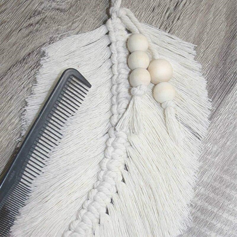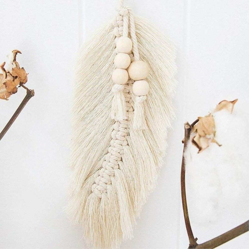 Craquez pour une belle plume en ventilzoo blanche décorée de perles en bois.Faite à la main en coton naturel, notre plume en ventilzoo est décorée de petites perles en bois pour un aspect naturel intemporel. Que ce soit pour décorer un tissage mural en ventilzoo ou pour apporter une légère touche bohème à une décoration d’intérieur déjà en place, notre plume répondra parfaitement à vos attentes et fera la différence d’une déco à une autre en ajoutant une petite touche de légèreté.Matière principale : CotonDimensions : H33xL13cmLivraison standard offerte